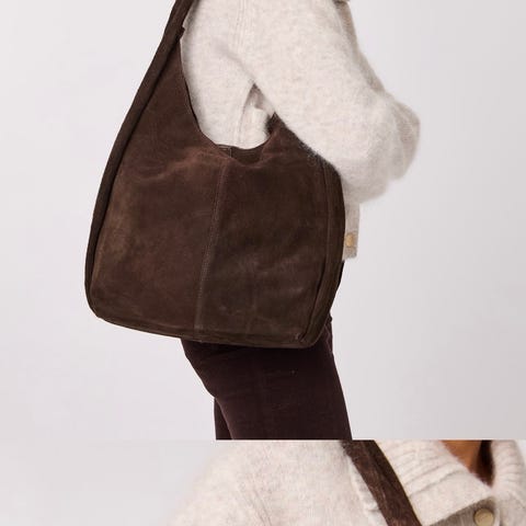 Denne vesken fra Carlos & Sabrina ble kjøpt i Italia på 90-tallet. Jeg er nesten sikker på at den er semsket skinn utvendig. Den er pent brukt, men mangler det lille «håndtaket» på den ene glidelåsen. Det er likevel ikke noe problem å lukke/åpne den glidelåsen.