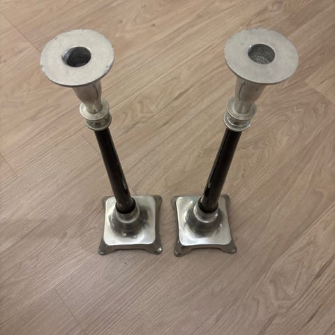 Lysestaker i to forskjellige grønnfarger. Den høyeste er 15,5 cm høy, den minste er 6cm høy. Kjøpt i Tromsø sommeren 2024 i en lokal butikk. Kan sendes eller hentes i Ski/Oslo.