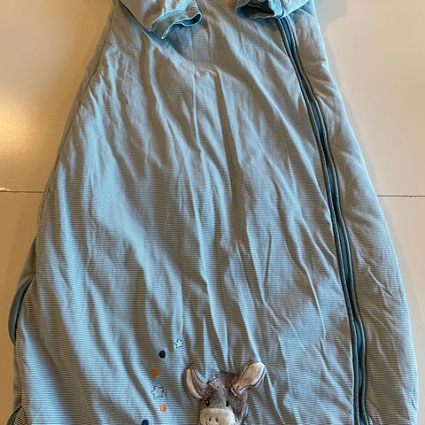 Ermi Sweet Dreams baby sovepose. En herlig nattpose til baby/barn. Mini har brukt den fra baby (da han vokse ut av svøpeposen) til han ble 3 år. Den er foret, og har blitt brukt i stedet for dyne (som bare ble sparket av). Den er lysegrønn med mange små gulrøtter. Avtakbare ermer.
