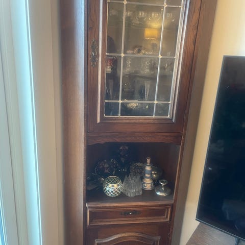 Hjørneskap brukt til tv benk selges videre