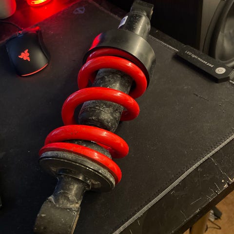 Torch fjærdemper i svart utførelse. Demperen har spiralfjær og festeøye i toppen for montering. Egnet som støtdemper/fjæringskomponent på kjøretøy eller maskiner der dimensjonene passer. Nøyaktige mål og kompatibilitet bør kontrolleres før bruk.