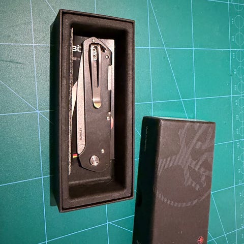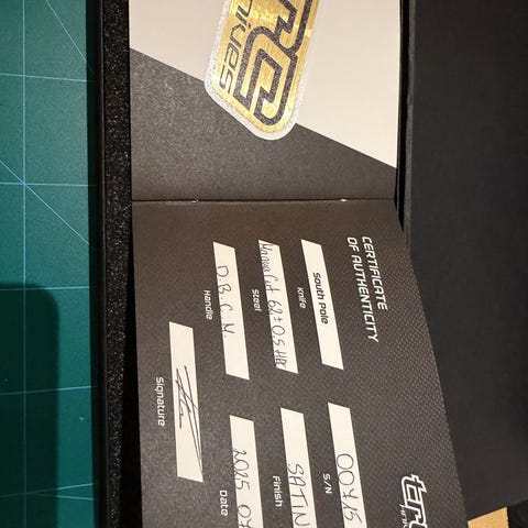 Bladet er laget av M390 premiumstål, herdet til 60–61 HRC, kjent for svært lang eggholdbarhet, høy slitestyrke og god korrosjonsmotstand. Den svarte DLC-coatingen (Diamond-Like Carbon) gir ekstra beskyttelse, lav friksjon og et rått, taktisk uttrykk.