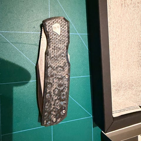 Håndtaket i Night Storm Carbon Fiber kombinerer lav vekt, ekstrem styrke og et slående visuelt preg. Kniven leveres med Kydex-slire med carbon fiber-tekstur, som sikrer trygg og diskret bæring.