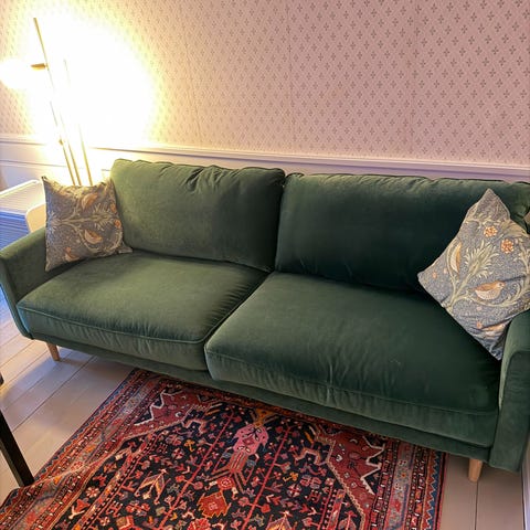 Pent brukt sofa i velour.