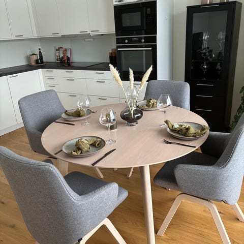 6 stk nesten ubrukte spisestoler fra Skeidar - modell Asti - selges samlet. Kjøpt i 2025, nypris 799,- pr stk