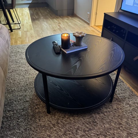 Manu sofabord fra Skeidar kjøpt for to år siden, selges grunnet flytting. Bordet har ingen merker og ser ut som nytt. Sortbeiset og lakkert eikefinér og med sortlakkert stålunderstell.