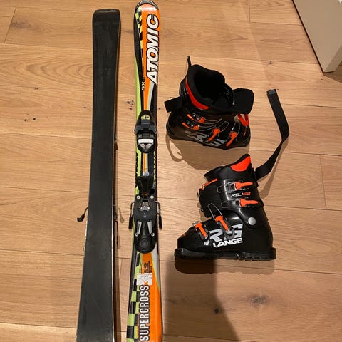 Selger godt brukt slalom sett med ski sko og ski. Skiene er 107cm i lengde og skoene er str 35-36