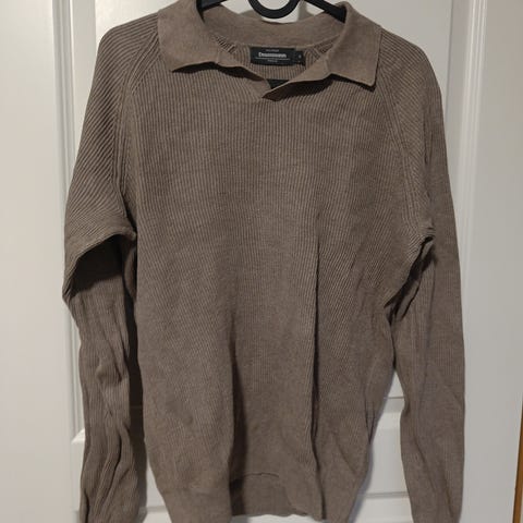 Dressmann genser for herre i størrelse S. Genseren er beige og laget av bomull.