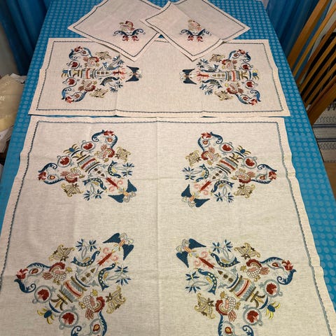 Pyntehåndkle, håndbrodert/aplikert for mange år siden, ubrukt, har bare ligget pakket bort.