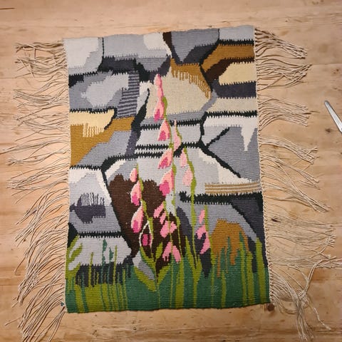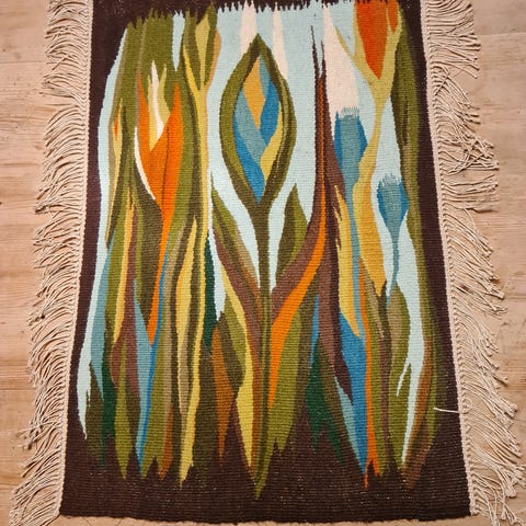 Fantastisk nydelig billedvev. Et mesterverk. Ukjent kunstner. Teppet er like vakkert på forsida som på baksida. Høyde 53,5 cm. Bredde 50 cm. Selges fordi jeg ønsker det skal komme tilbake til kysten der det egentlig hører hjemme.....et sted med blått hav og skarv. Hentes eller sendes med Posten.