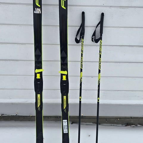 Fischer Sprint langrennsski 130 cm med Rottefella-binding + staver 100 cm