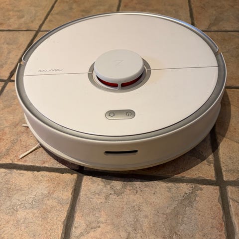 Roborock robotstøvsuger med automatisk tømmestasjon i svart farge. Enheten er utstyrt med dokkingstasjon som samler opp støv fra støvbeholderen i roboten. Robotstøvsugeren har rund form og lav profil, egnet for rengjøring av harde gulv og tepper i hjemmet. Passer til daglig støvsuging av bolig, og kan brukes i flere rom der det er behov for jevnlig rengjøring.