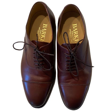 Nydelige og robuste randsydde sko fra engelske Barker. Ukjent modell, mørkt grain-lær og commandosåle fra Itshide.