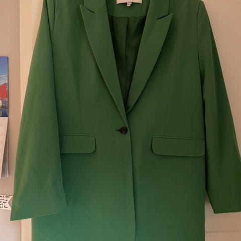 Jakke str 44 og bukse str 42. Store i størrelsen. Merke er b.young. Materialet er polyester/viskose