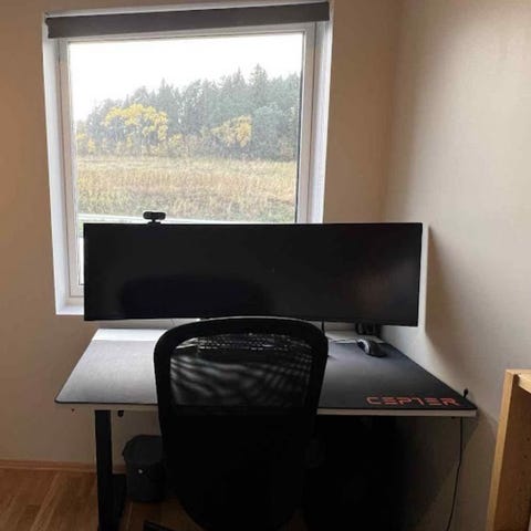 Alt er pent brukt, fullt fungerende og i god stand. Stilrent og ryddig oppsett – tar lite plass på pulten.