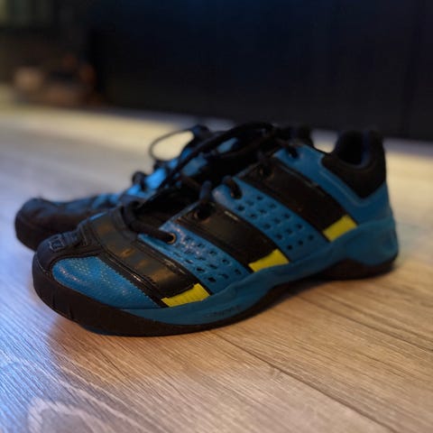 Adidas joggesko for gutt og jente i størrelse 38. Skoene er blå med hvite og grønne detaljer. De har borrelåslukking over vristen for enkel av- og påkledning. Yttersåle i gummi gir godt grep på underlaget. Egnet som gymsko/ hallsko/ innesko/ håndball sko/ fotballsko eller joggesko, hverdagssko og til lett aktivitet for barn i aktuell skostørrelse.