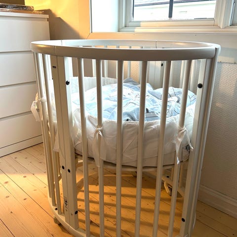 Stokke sprinkelseng hvit - med vugge