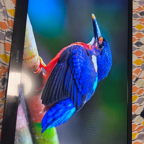 Samsung TV med flatskjerm. Leveres med fjernkontroll som vist på bildene. Passer til vanlig TV-bruk og tilkobling av eksterne enheter via tilgjengelige tilkoblingsporter på baksiden eller siden av TV-en, avhengig av modell.