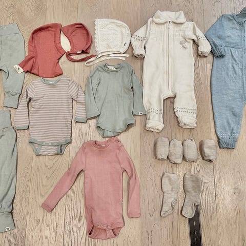 Klær fra Petit bateau, Newbie, Lindex, HM, Åhlens, nøstebarn. Også 2st nydelig hjemmestrikkede bodies.