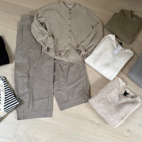 Klespakke med genser,bukse og cardigan. Grønn genser er i str medium.