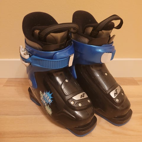 Tecnica skistøvler i størrelse 27.5 (innersåle ca. 315 mm). Tror det tilsvarer strl 9. Modellen har fire spenner og powerstrap for justering og tilpasning rundt fot og legg. Innersålen kan tas ut og er god og varm. Passer til bruk i alpinbindinger på vanlige alpinski. Noe brukt.