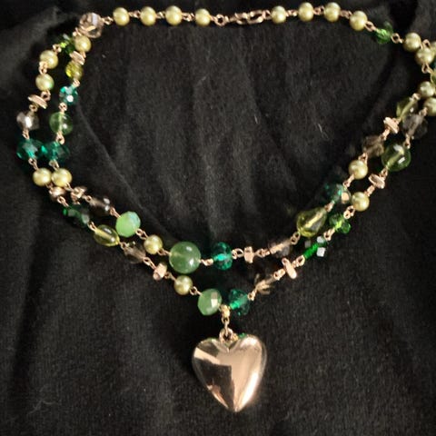 Håndlaget smykke med perler og hjerteanheng dame