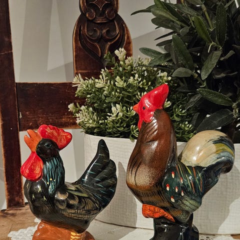 2 Nydelige påske kyllinger fra 80 årene. 14 og 11 cm høye. Pent brukt.
