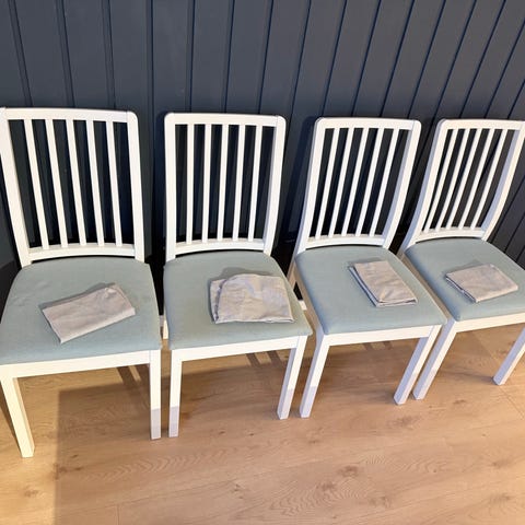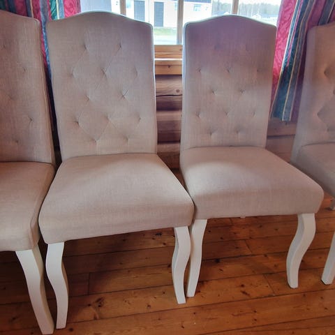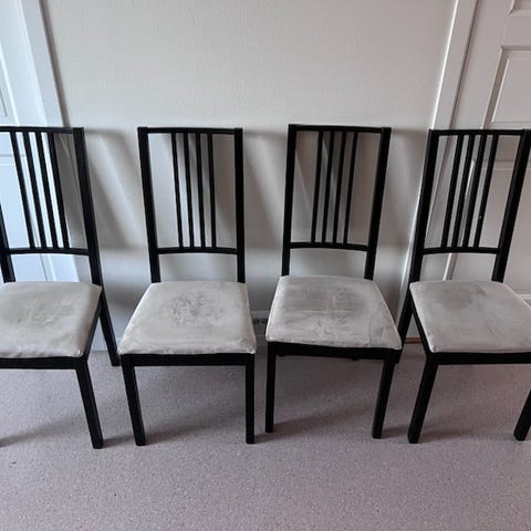 4 fine gamle stoler, stødige, malt i sølv.
