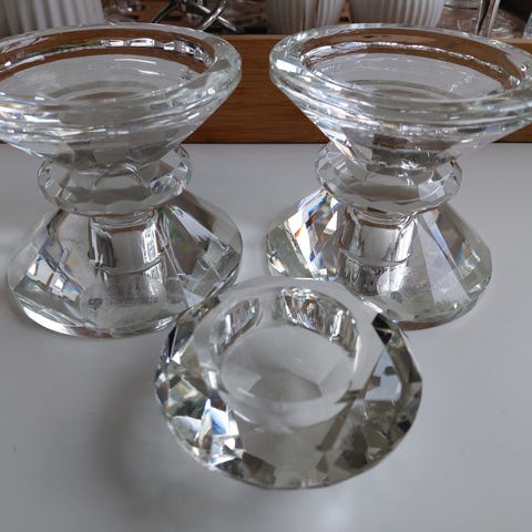 Billig krystall lysestaker til kubbelys og stearinlys selges 🌸 300kr per par eller 500kr samlet