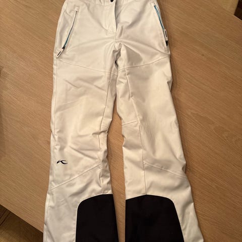 Ski og vinterbukse i merke kjus, 152. Strikk i bena og justerbart liv med borrelås. Noen små flekker, men er ellers i fin stand.