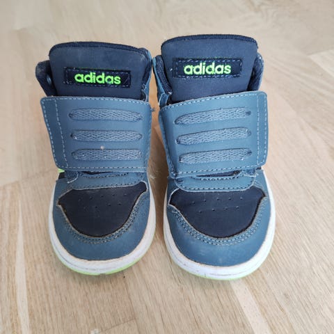 Adidas joggesko for barn, størrelse 22, gutt. Pakken inneholder to par sko, ett par hvite og ett par svarte. Begge parene har borrelåslukking over vristen for enkel av- og påtaking. Overdelen er i syntetisk materiale med tekstilfôr, og yttersålen er i gummi med mønster for grep. Skoene passer til hverdagsbruk og lett aktivitet for små barn.