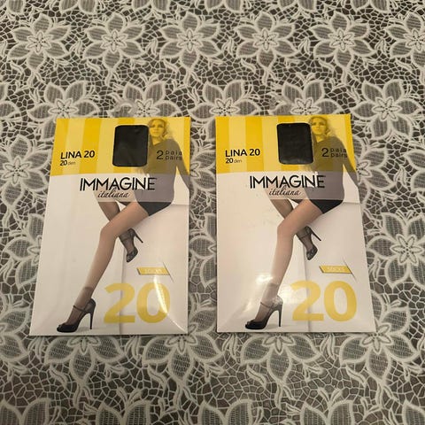 Selger helt ny pakke med 2 par LINA 40 svarte nylonsokker i tykkelse 40 denier fra IMMAGINE Italiana for 40 kr.