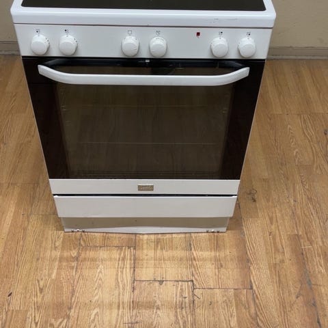 Bosch keramisk komfyr i hvit utførelse. Komfyren har keramisk topp med flere kokesoner og stekeovn med frontåpning. Betjening skjer via dreieknapper på fronten. Egnet til vanlig matlaging og baking på kjøkken.