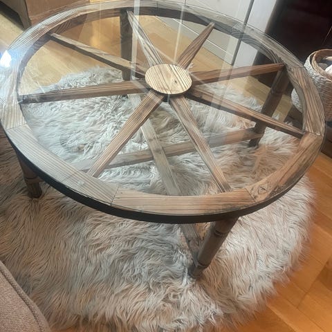 Eldre Glass bord med pidestall understell