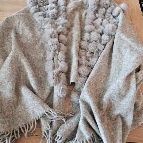 Flott stort skjerf i ull med pels