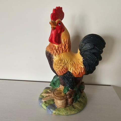 Nydelig fargerik hane fra 80 årene. 14 cm høy. Pent brukt, mest ligget nedpakket.