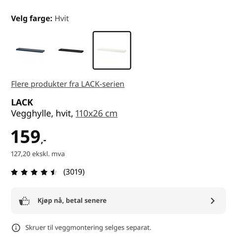 Frakt fra 99 kr + Trygg betaling 40 kr
