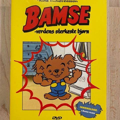 Bamse verdens sterkeste bjørn DVD-boks. Samleboks med flere episoder av den animerte serien om Bamse, tilpasset barn. Inneholder DVD-plater med tegnefilm på norsk. Egnet for avspilling på standard DVD-spiller.