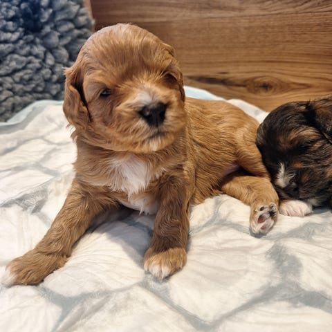 Rød jente RESERVERT. Nå har vi fått et nydelig kull av renrasede Amerikanske Cocker Spaniel valper. De ble født 07.02.2026 og de vil være leveringsklare ca 04.04.2026 ved 8 ukers alder.
