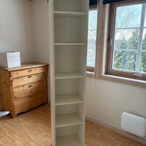 Bokhylle fra IKEA. En synlig skade helt nederst, ellers pent brukt.