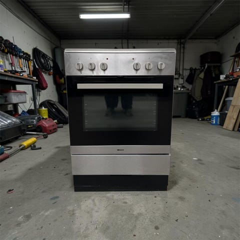 Praktisk og solid komfyr med keramisk platetopp og romslig stekeovn. Komfyren er funksjonstestet, rengjort og klar til bruk. Et godt valg for kjøkken, hybel eller utleie.