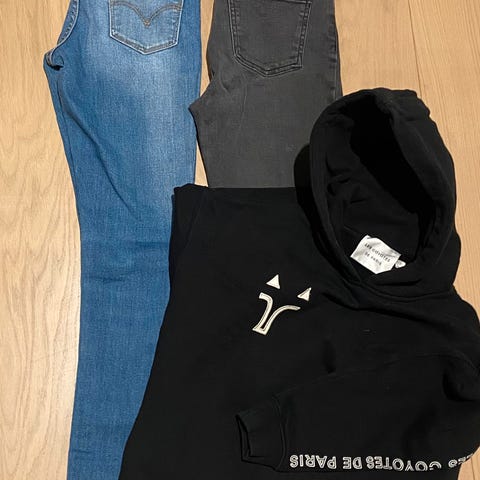 Levis loose taper 14 år, Tommy hilfiger pikeskjorte str 176 og Original studios (Jack&Jones) hettegenser str 164. Svakt lite merke på lomme hettegenser, se foto