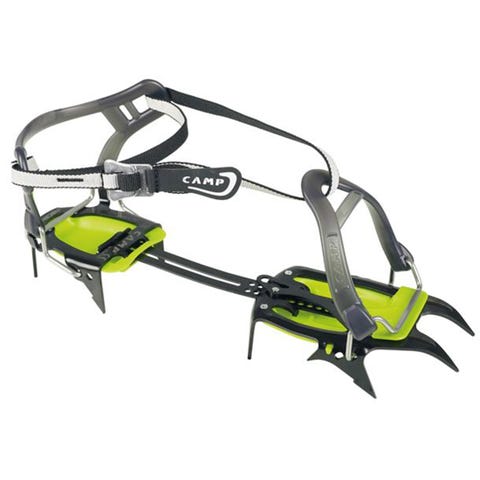 Black Diamond stegjern i stål med oransje plastplater og rembinding. Stegjernene har justerbar lengde og flere tagger foran og under for feste på is og hard snø. Passer til bruk på fjellturer, is og bre hvor det er behov for ekstra grep på glatte underlag.