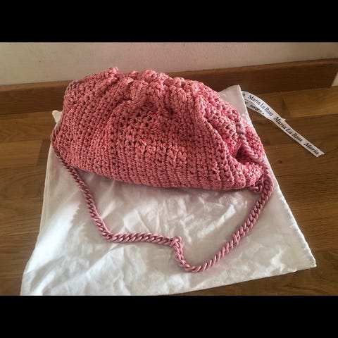 Ubrukt veske kjøpt på marbella sommeren 2025, bredde 28cm. Høyde 23cm. Målt uten hank.Lang rem til skulder medfølger.