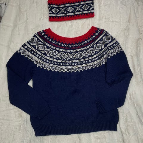 Pent brukt hjemmestrikket ullgenser i fine vårfarger