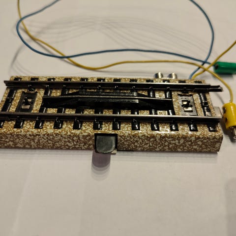 Modelljernbane elektriske vekselspor i buet utførelse. 2 x ventre og 2 x høyre. Innsatt motor og digial dekoder.