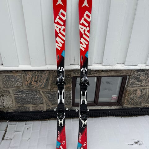 Atomic Redster J2 alpinski i lengde 130 cm. Skiene har sidecut 109–68–90 mm og radius 10,5 m, som gir en carvingski med kort svingradius.Skiene leveres med Ezytrak-binding montert på ski.