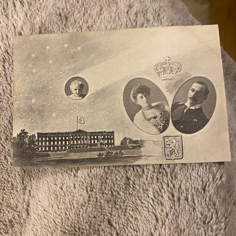 Sjeldent postkort utgitt av A/S Küensberg Kunstforlag i 1906, første hele året med Kong Haakon VII som Norges konge.