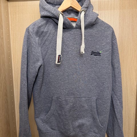 Superdry hettegenser for herre i størrelse S. Genseren er svart og laget i bomull. Modellen har glidelås i front, justerbar hette med snøring og ribbestrikkede mansjetter og linning. Passer til hverdagsbruk og som et ekstra lag på kjølige dager.