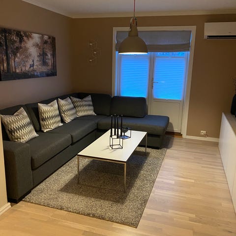 Selger sofa med puff fra Møbelringen pga ny leilighet der sofaen ble for stor.